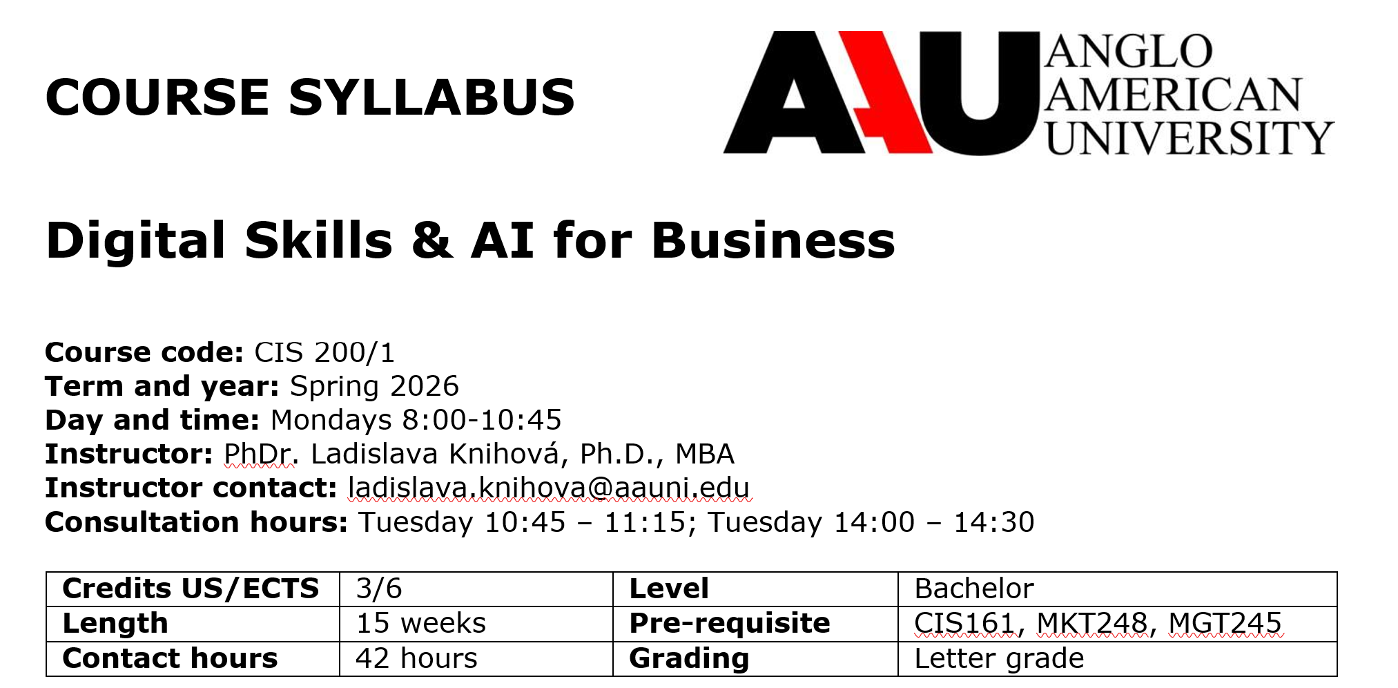 Digital Skills & AI for Business - CIS200/1 Spring 2026